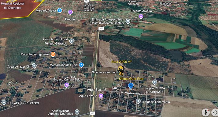 Sitioca Ouro Fino trás ao seu morador, a tranquilidade de uma área rural, mas com uma vantagem, a 9,0km do centro cidade de Dourados. Os lotes estão em excelente localização, ficam na segunda quadra, bem no início da Sitioca, avistando a BR163, com fácil acesso. Possuem a metragem 20,00m² de frente X 50,00m² de profundidade cada lote, com uma Área total 2.000,00m². Se você se interessou em conhecer melhor esta Sitioca, preencha o formulário nesta página, e agende uma visita.