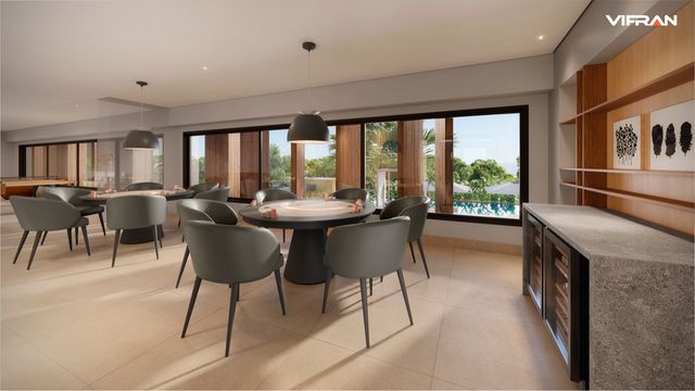 A experiência se completa com uma área de lazer de excelência, incluindo piscina semiolímpica aquecida, academia de alta performance, quadra de beach tennis, espaços gourmet climatizados, coworking, brinquedoteca e ambientes decorados com elegância singular.