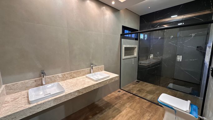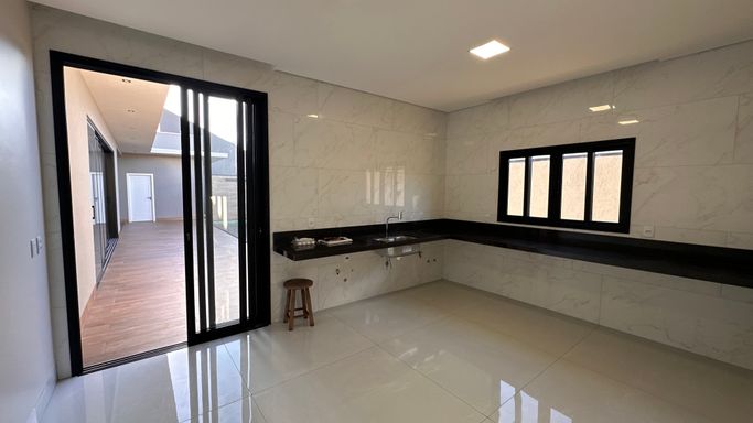 A fachada imponente já anuncia o que você encontrará ao entrar: espaços amplos e integrados que valorizam o convívio e a funcionalidade. A garagem comporta com facilidade três camionetes, garantindo praticidade para sua família. A casa conta com uma sala de estar e jantar integrada à cozinha, que traz fluidez e modernidade ao ambiente.