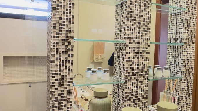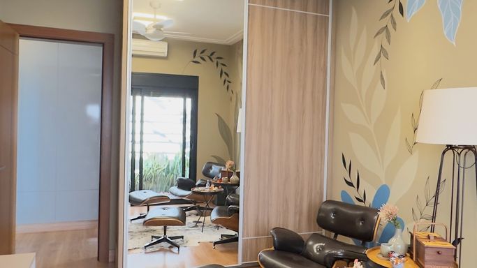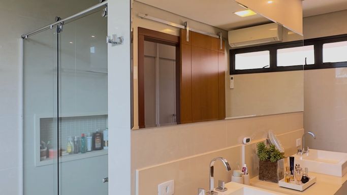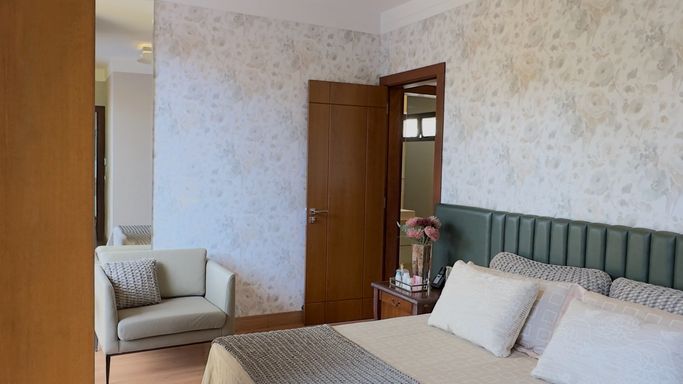 A casa oferece três suítes amplas, todas com excelente iluminação natural e ventilação cruzada. A suíte principal se destaca pelo closet planejado e pelo banheiro elegante, criando uma atmosfera serena e acolhedora.