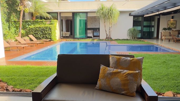 Localizada no Ecoville, um dos endereços mais desejados de Dourados, esta residência combina arquitetura contemporânea, integração absoluta entre os ambientes e uma atmosfera de conforto planejada nos mínimos detalhes. Uma casa criada para quem busca viver com elegância, funcionalidade e assinatura arquitetônica.