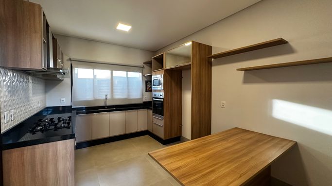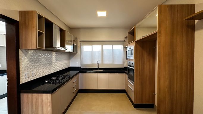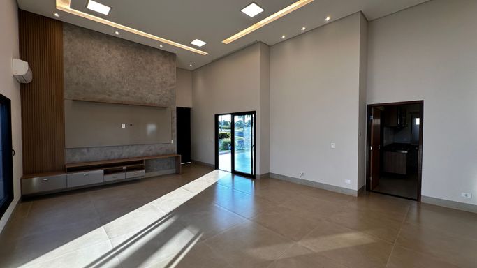 O pé direito duplo confere grandiosidade e leveza aos espaços, enquanto a cozinha americana de grandes dimensões e o espaço gourmet foram pensados para receber com elegância. A garagem coberta com 2 vagas e 2 descobertas assegura conforto e praticidade para toda a família.