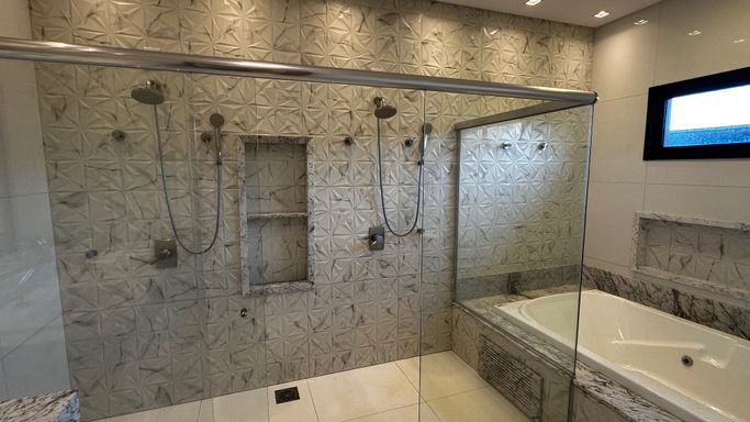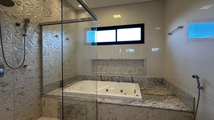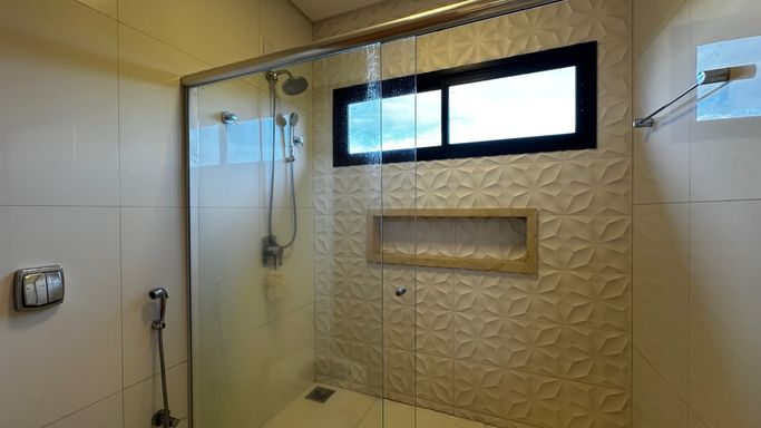 São 3 suítes, 4 banheiros, 3 salas integradas, varanda gourmet fechada com vidro, banheira, hidromassagem e closet — uma combinação que transforma o dia a dia em experiência de resort particular.