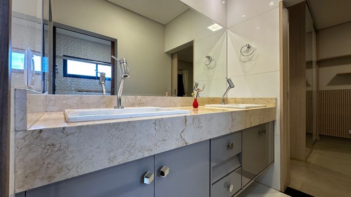 O acabamento premium fala por si: porcelanato, mármore, granito, gesso, sanca, móveis planejados, armários embutidos em todos os ambientes e energia solar para um estilo de vida inteligente e sustentável.